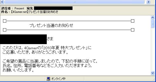 4gamerの2010年夏 特大プレゼントに当選した。