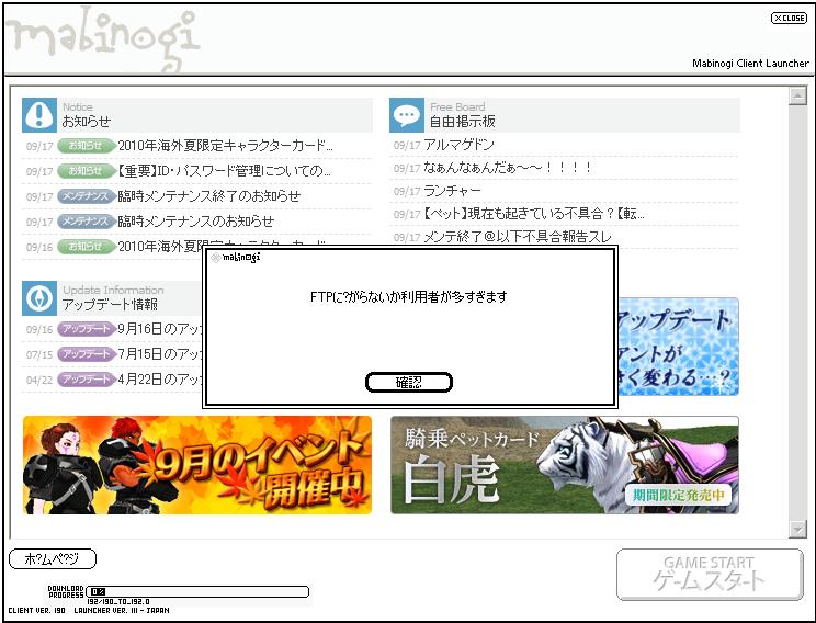 昨晩からクラを起動しているものの、FTP鯖に繋がらん。