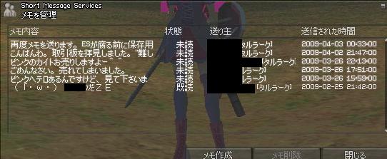 久しぶりに別のキャラでインすると、よく判らないメモが届いてた。
