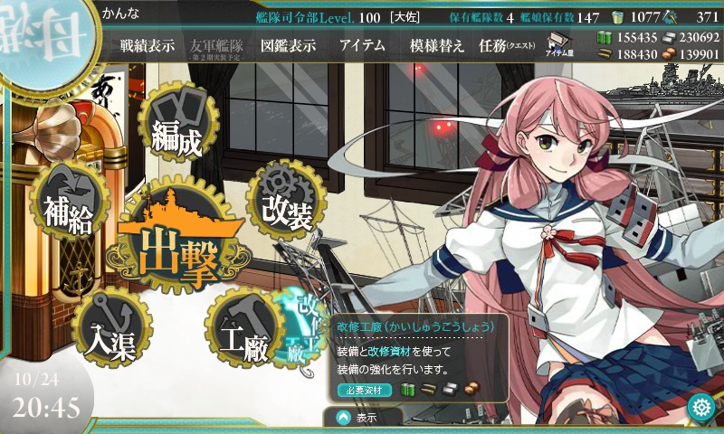 秋イベに向けてバケツを貯めてる関係で全然出撃ができない・・・