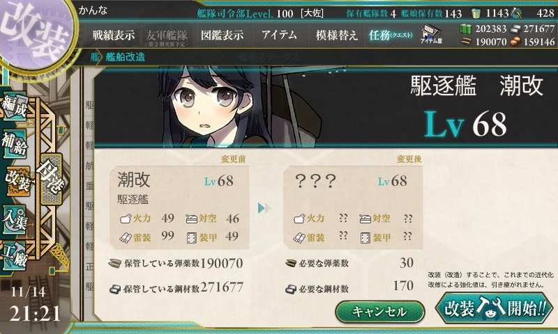 ま、イベントは明日からとして、とりあえず今日は潮改二だけ。