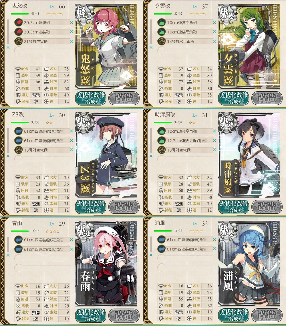 鬼怒と夕雲以外はほぼ改修なし。