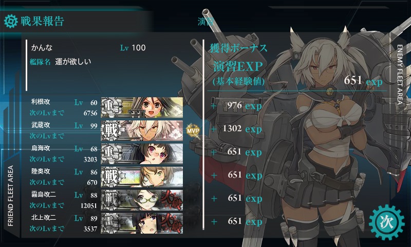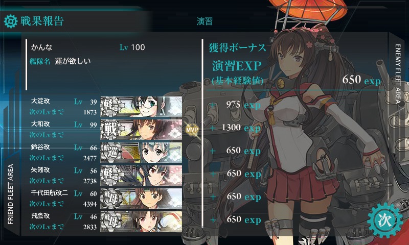 班長とMVPに経験値ボーナスあり。