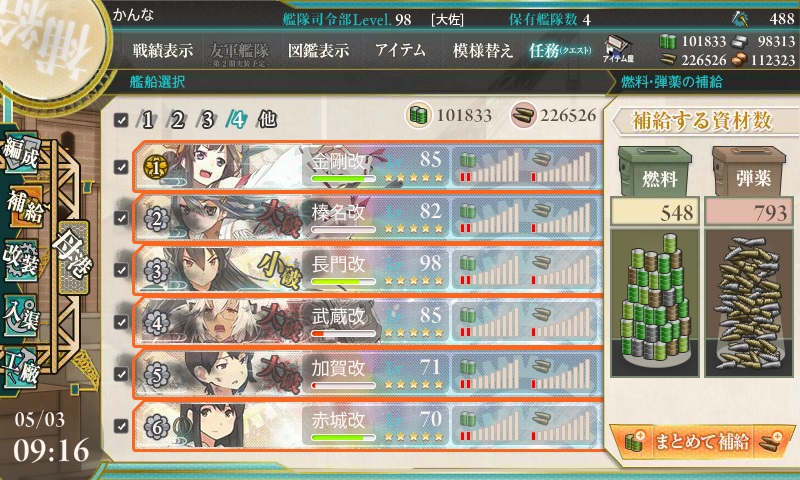 戦艦が2隻なのがちと厄介だが初戦と2戦目に比べれば癒し・・・かなぁ。