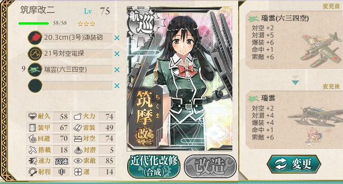 イベントが終了したので筑摩を改二に、航巡へ。