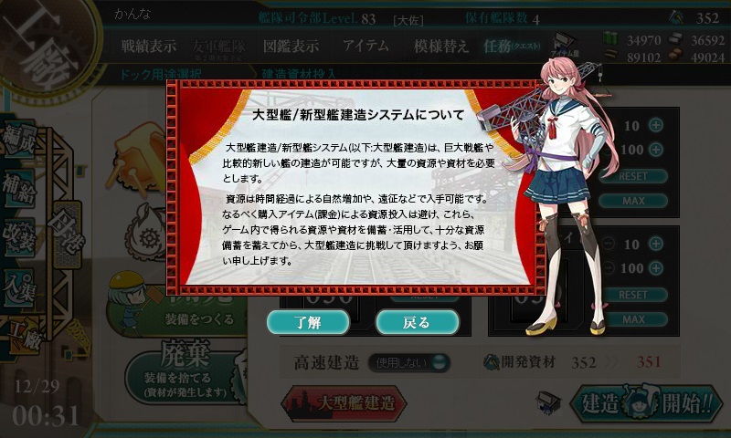 イベント海域の攻略が終わったので大型艦建造に少しだけ手を出してみた。