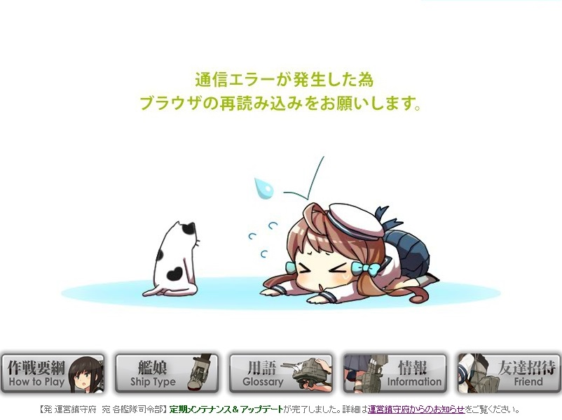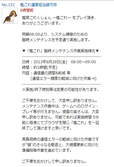 「高負荷時の通信エラーの軽減に向けた作業ですが"猫"のさらなる駆逐と、大規模更新に向けた準備段階作業を進めています。」