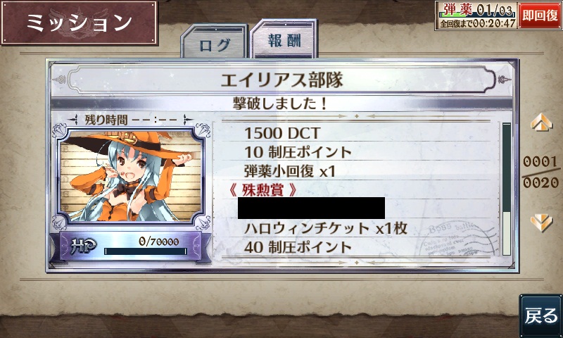【発見】チケット1、1500DCT、1000TP、制圧20。