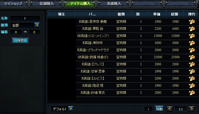 英雄購入タブの課金英雄も残ってる物ばかり。