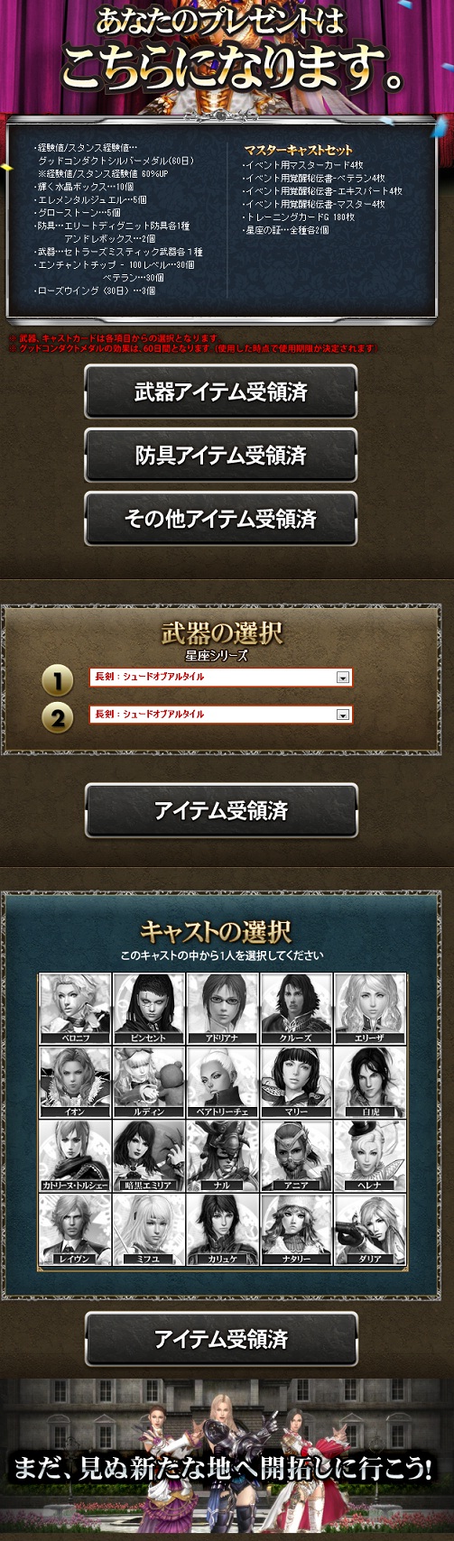 キャラ作るときにイーストに来てくれ、みたいなメッセージが出た。