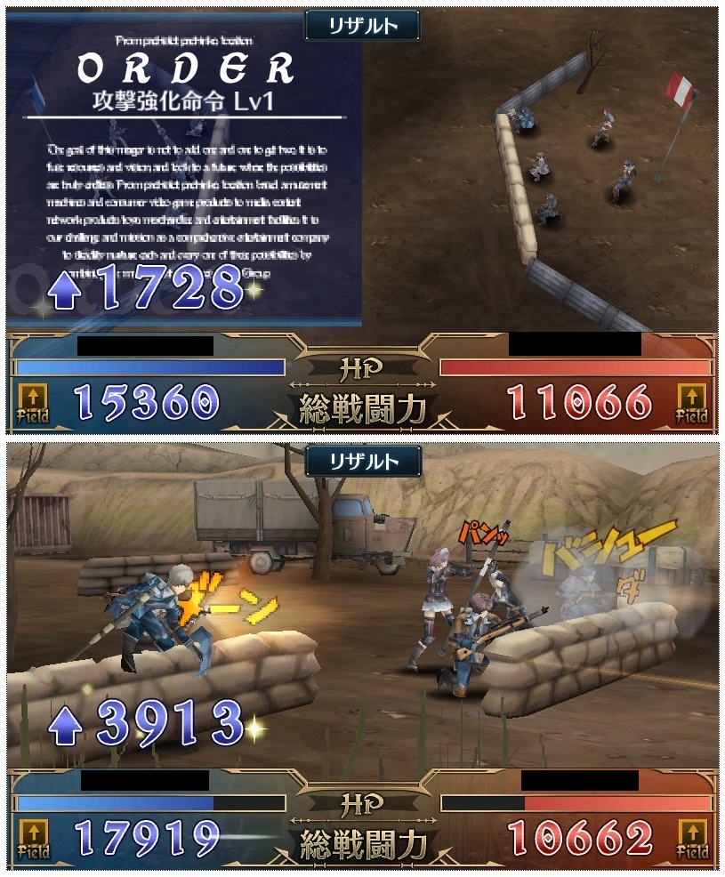 オーダー、ポテンシャル、コンビネーション→戦闘開始、援護という流れ。