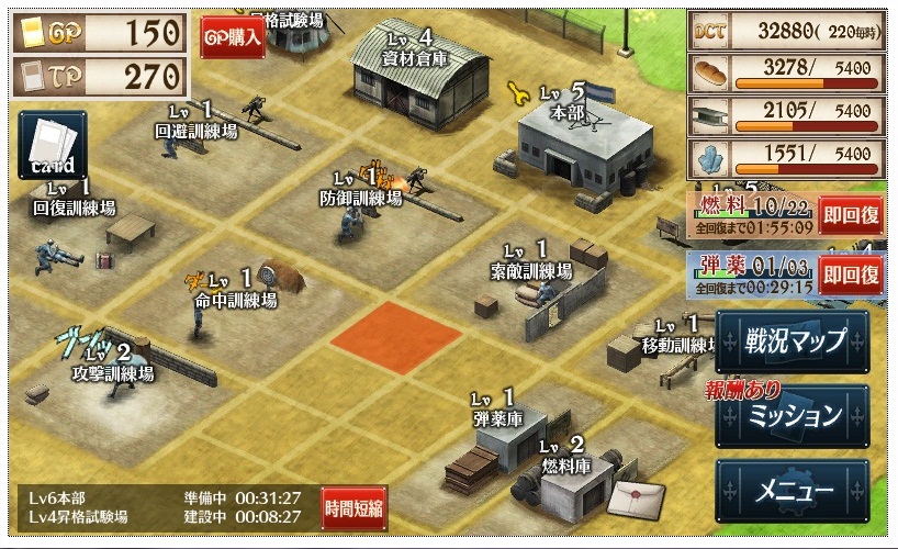 本部と階級を上げればコスト上限が増えるので、それを考慮して拠点を発展させるといいかも。