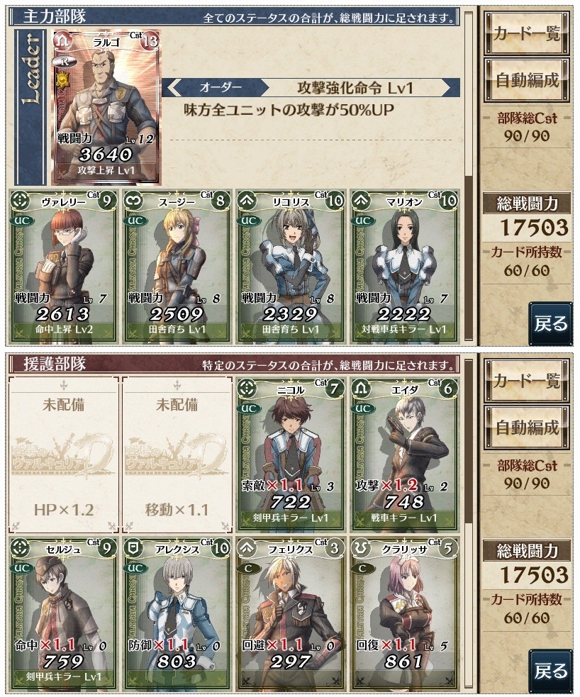 部隊編成は出撃・支援枠+コスト式。