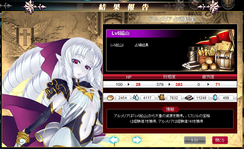 ミスリルの宝箱からは資源500*1種類、綺麗な銀の首飾りの欠片を確認。
