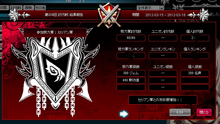 討伐戦イベント開始に伴い、1日早く討伐戦開始。