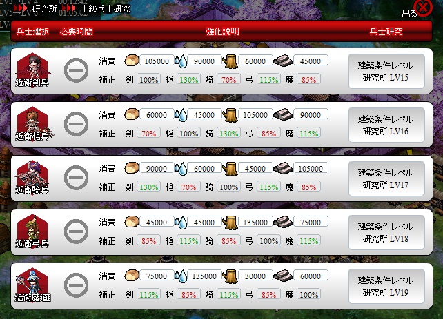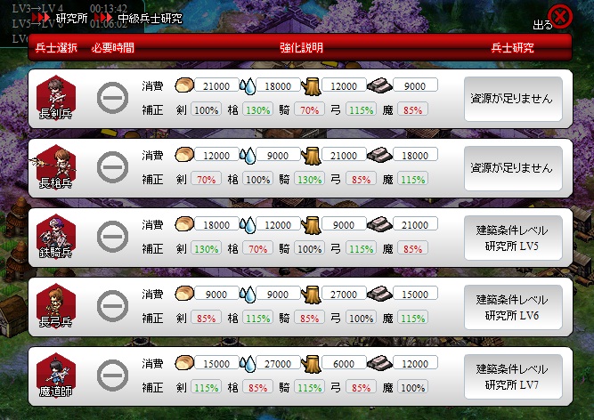 長剣兵の研究時間が24時間、鍛冶の攻撃やらHP強化も24時間だったし。